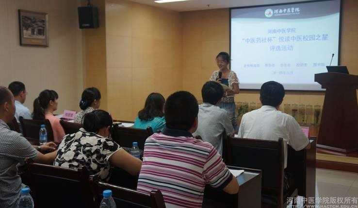 2014年6月27日下午,米兰(中国)首届“中医药社杯”全国悦读中医校园之星校级评选决赛在教学实验大楼BM708会议室举办。此次活动是由中国中医药出版社联合中华中医药学会中医文化分会,首次在全国各个中医药院校开展的全国悦读中医校园之星评选活动。米兰(中国)选拔赛由宣传统战部、教务处、学生处、校团委、图书馆共同主办。
