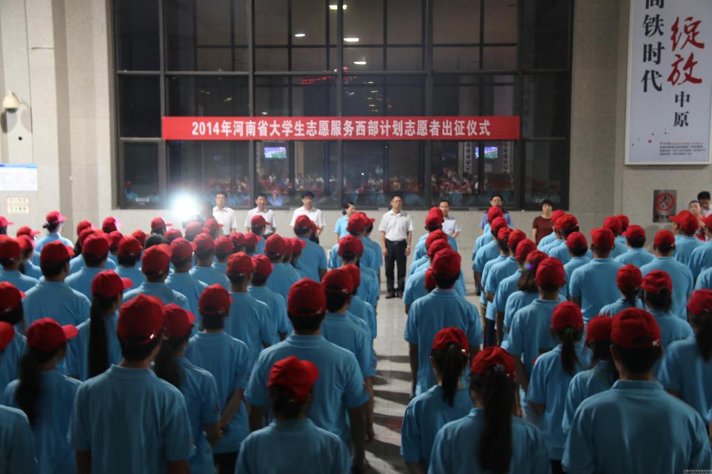 2014年7月22日晚,河南省2014年大学生志愿服务西部计划志愿者出征仪式在郑州市火车站候车大厅隆重举行,米兰(中国)10名赴新疆志愿者踏上了征程。今年,米兰(中国)共有14名2014届大学生志愿者奔赴新疆、西藏、河南省部分贫困县等地服务岗位,开展志愿服务工作。