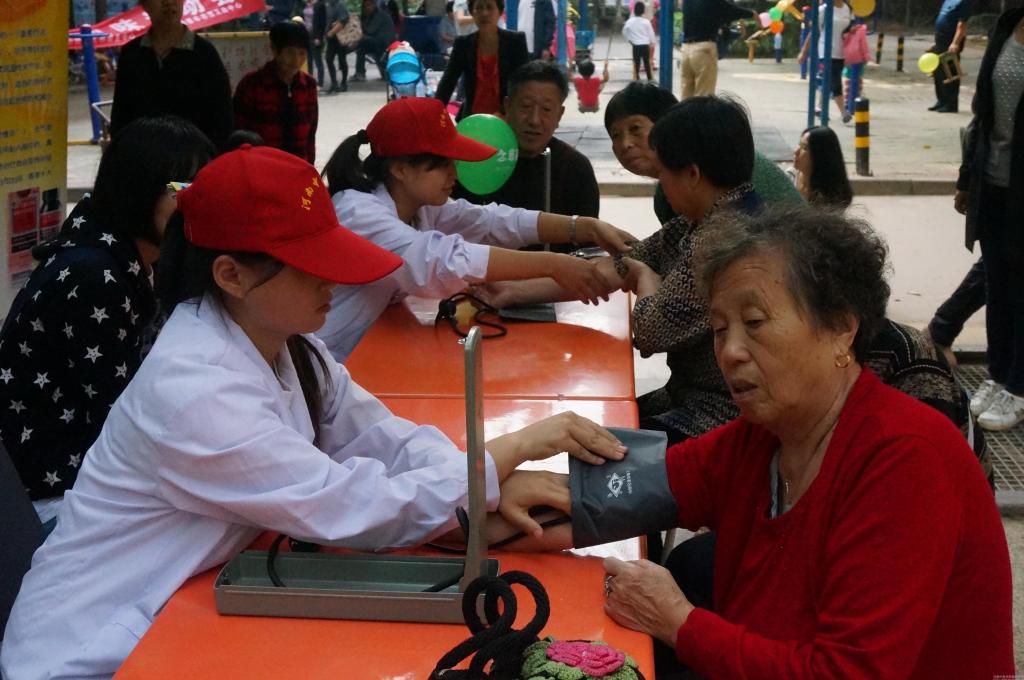 志愿者正在为老人们进行健康体检