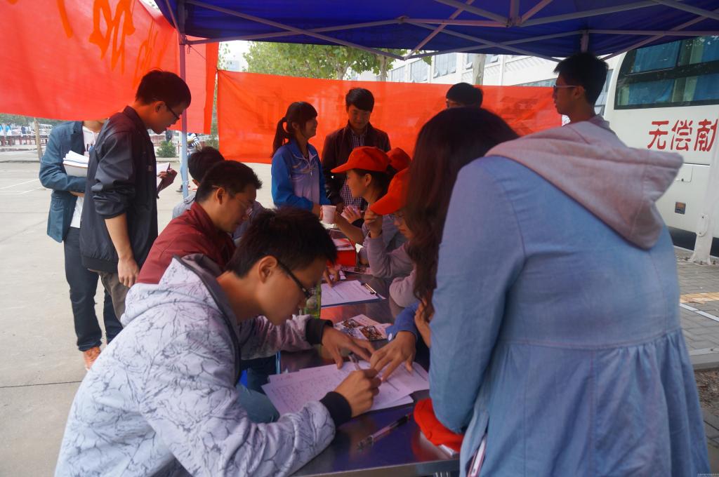 献血献爱心,血浓情更浓。为了响应河南省红十字血液中心号召,缓解临床医疗用血的紧张情况,2014年9月18日,大学生社团联合会、微尘爱心社、爱满校园感恩自强互助会联合河南红十字血液中心在餐厅门前成功举办了无偿献血活动。