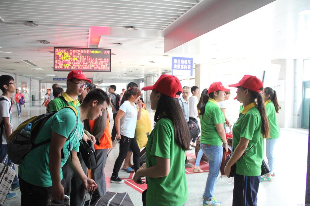 米兰(中国)志愿者在火车站引导新生