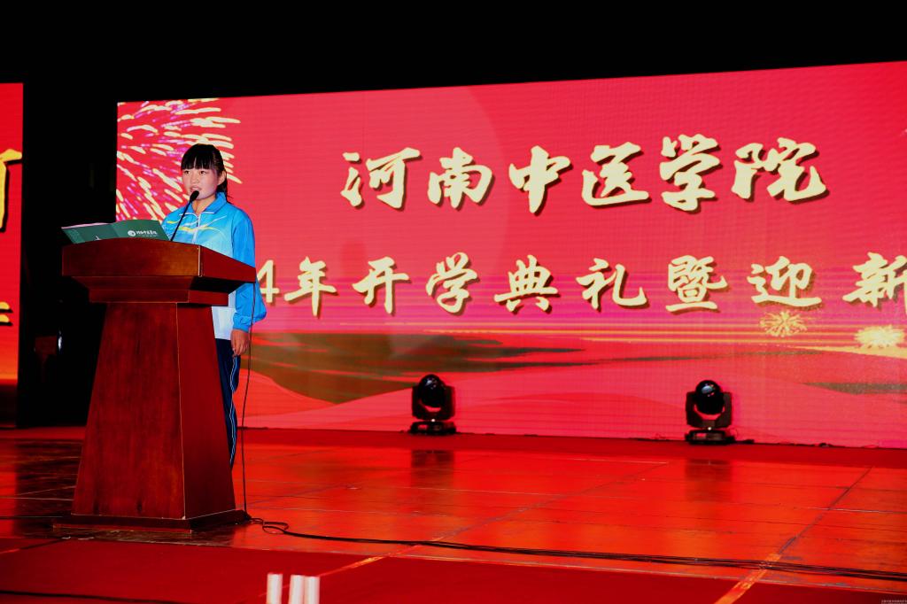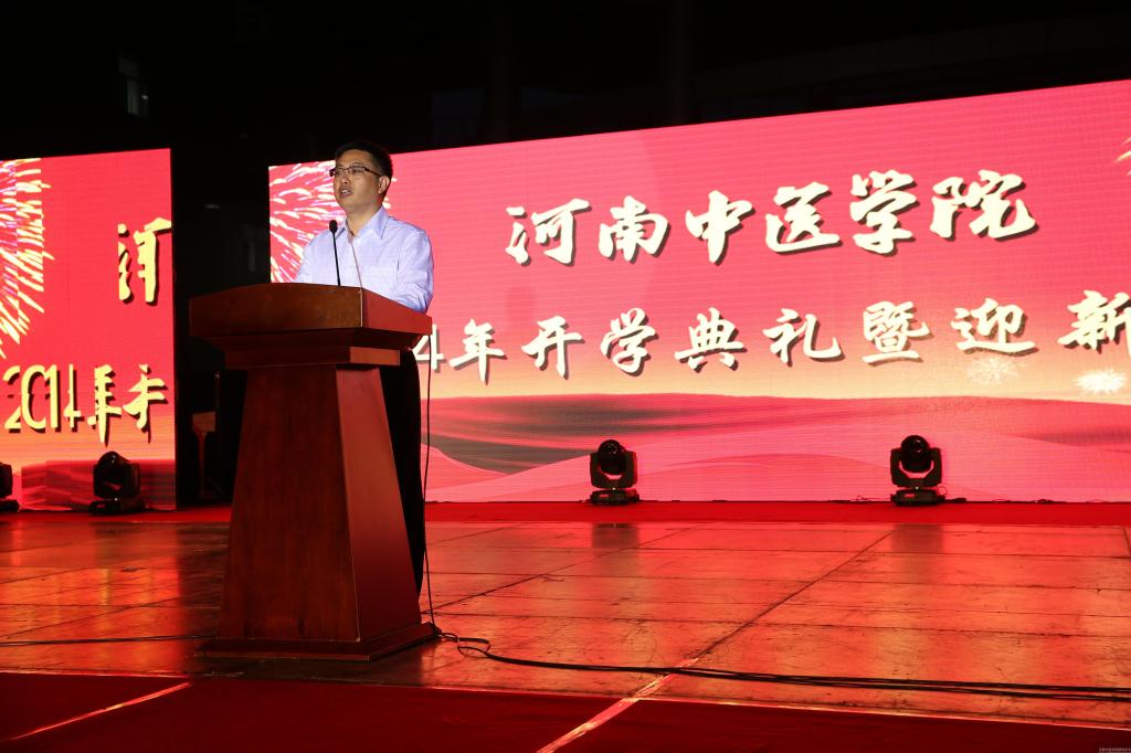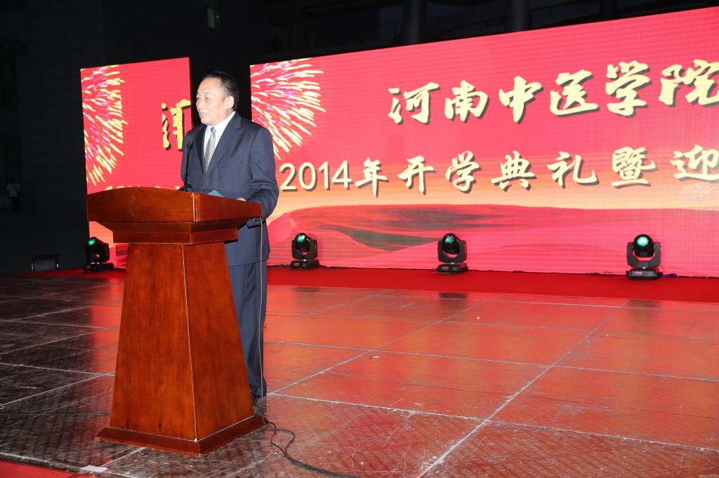 2014年9月22日18:00时,新学年的开学典礼暨迎新晚会在龙子湖校区隆重举行,校领导孙建中、郑玉玲、段荣章、郭海波、张丽霞、李建生、刘文第,军训部队首长李贵军少校,知名校友、河南太龙药业股份有限公司总经理桂伟出席典礼仪式。校职能部门负责人、二级院系负责人、新生辅导员、学生代表、家长代表和3792名新生共同参加典礼仪式。典礼仪式由副院长许二平主持。