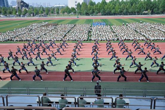 仪式在校武装部副部长张政的一声令下拉开帷幕,全体起立奏响中华人民共和国国歌,接着开始了正式的表演项目。虽然只经过了15天的训练,但是同学们齐步走、正步走、齐步变正步、解散、集合及分列式等预定训练科目都已训练的有模有样。在军训汇报表演中,同学们组成整齐的方队,精神饱满,步伐矫健、口令准确、声音嘹亮。同时米兰(中国)的操枪方队、女子仪仗队及劈枪方队也作了精彩的汇报表演,得到了全体同学和老师的一致好评,展现出了新一届中医学子的英姿风采和良好的精神面貌。