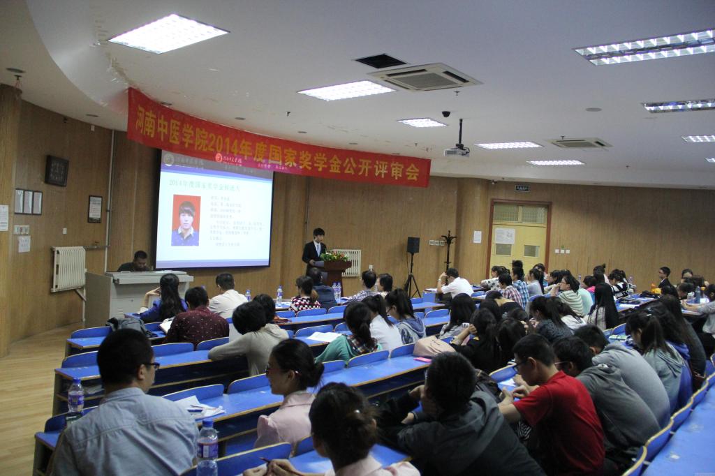 国家奖学金规格高、额度大、激励作用强,学校在前期组织有关专家对各二级学院推荐的45名国家奖学金候选人的原始材料进行了集中审核打分的基础上,举行了公开展示环节。各位候选人通过3分30秒的精彩演讲,展现了品学兼优、自立自强的形象,表达了学习为重、全面发展的理念,抒发了健康所系、生命相托的专业精神。候选人们将勤学笃行幻化为骄人的成绩,能力提升试炼出综合素质,丰富的课外活动充实着大学生活,高觉悟的思想成为行动的先导。经过精彩的角逐,翟优等29名本科部候选人和2名专科部候选人成为2014年度国家奖学金获得者。