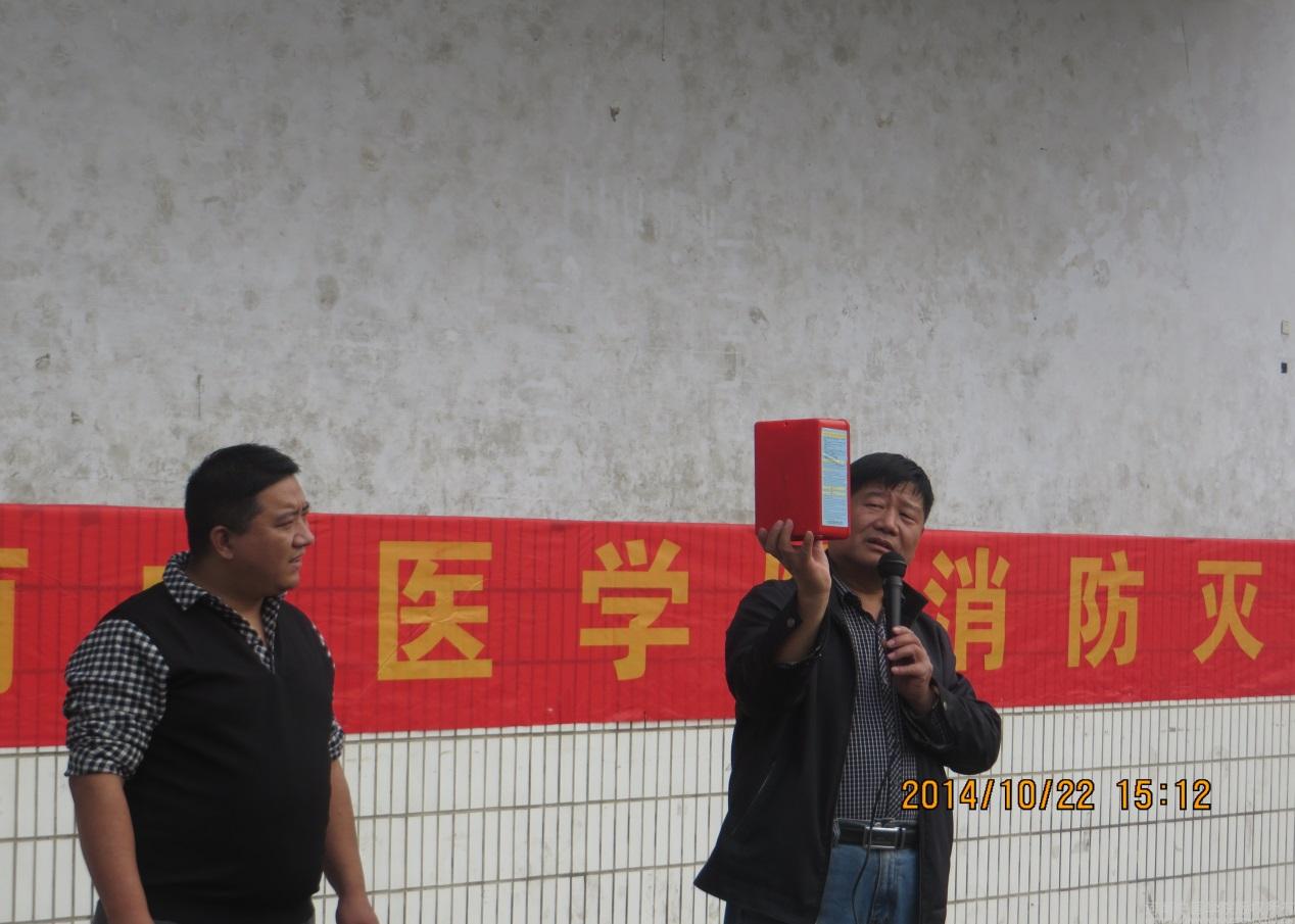 消防科科长刘永池和消防专管员杨鹏飞为大家讲课