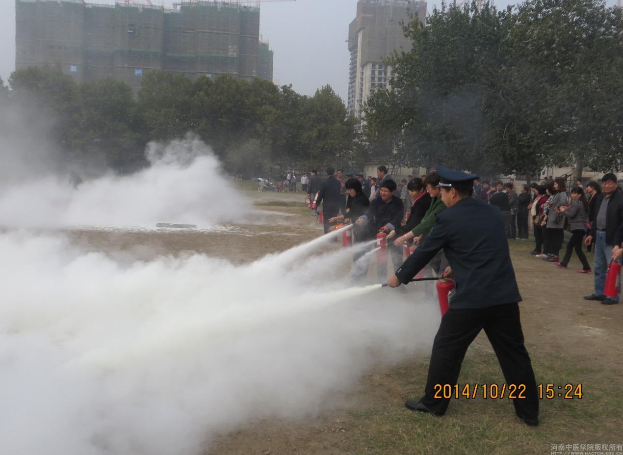 2014年10月22日下午,保卫处与东明校区管理处联合在东明校区操场组织进行了一次消防灭火实战演练。东明校区图书馆、研究生处、职业技能培训中心、继续教育学院、后勤集团公司及三附院等单位的近70余名教职工参加了演练活动。