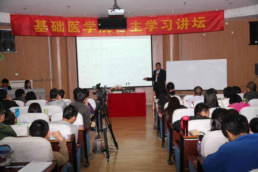 基础医学院“自主学习讲坛”是以“培养学生自主学习能力”为出发点而打造的一项校园文化活动,旨在培养、提高学生自我规划、自我管理、自我调节、自我监测、自我评价和自我反馈能力,为促进同学们学好中医药知识、形成良好的学风学貌营造氛围。(基础医学院)