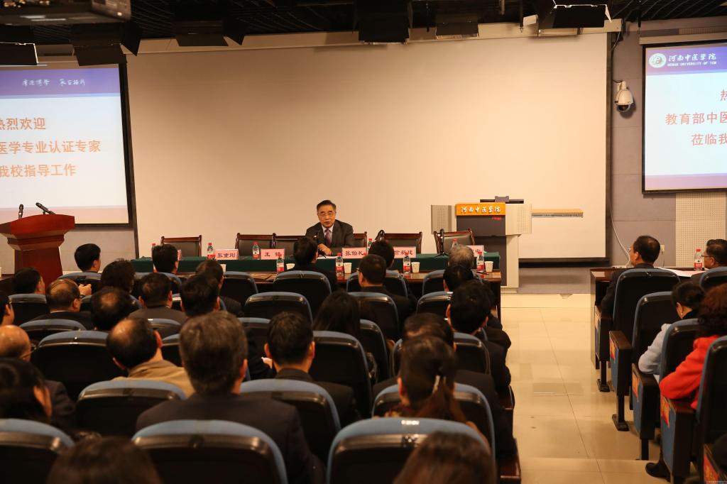 开幕式上,訾新建副厅长代表省高工委、教育厅对专家组的认证工作表示热烈的欢迎和衷心的感谢。他着眼于全国高等教育的发展形势,指出中医学专业认证的重要意义,充分肯定了学校几年来在外延扩张和内涵建设等方面取得的可喜成绩。他引用《难经》中的“望而知之谓之神,闻而知之谓之圣,问而知之谓之工,切而知之谓之巧”,希望专家们通过听、看、查、议等方式,对中医学专业进行全面认真评估,帮助学校总结经验,查找不足,为学校的改革发展多提宝贵意见。希望学校进一步强化中医骨干专业地位,认真凝练学科专业发展方向,创新人才培养模式,建立更加有效的促进人才培养、提高教育质量、打造专业特色的团队。