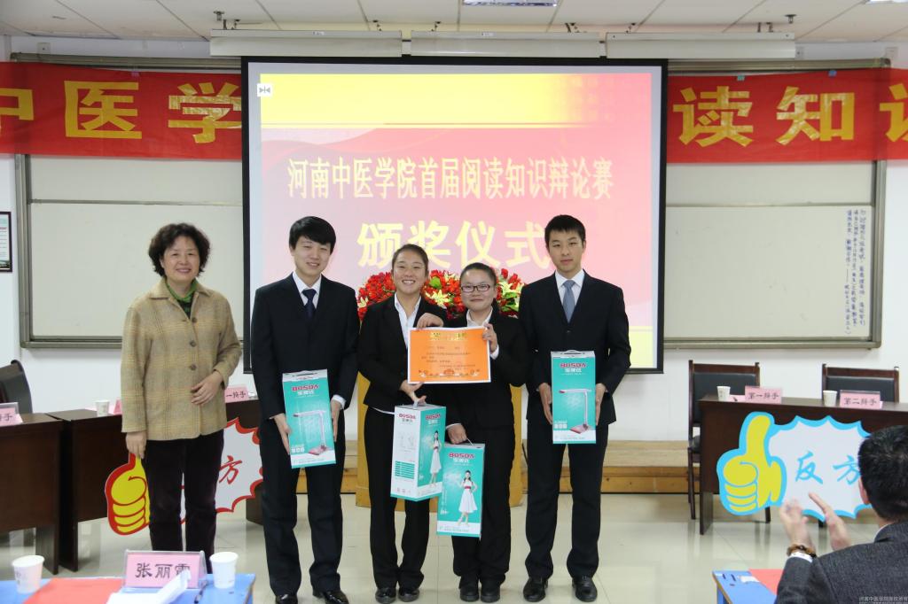 赛后举行了颁奖典礼,张丽霞副书记出席典礼并讲话。她对本次活动的效果表示赞扬,对组织此次活动的图书馆、宣传部、学生处、校团委和承办方外语学院的辛勤工作表示肯定。张丽霞副书记讲到,辩论赛是一项集知识积累、语言技巧、团队协作等多元素统一的艺术,辩论赛能够很好地展示当代大学生的风采,希望通过辩论赛,在学校形成浓厚的学术氛围,充分带动校园文化建设。