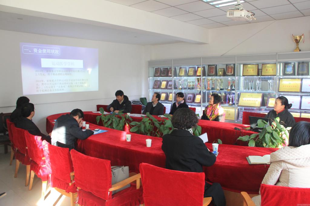 2014年12月18日上午,院长郑玉玲,学科办主任樊蔚虹及财务处、国资处、基础医学院、药学院、一附院、二附院、三附院等部门负责人来到体育教研部,检查重点学科建设工作。体育教研部主任孙再玲、书记赵群英等参加了重点学科建设工作汇报会。