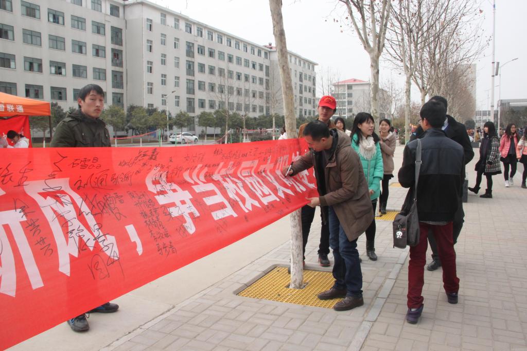 师生在“学雷锋纪念日”条幅上签名