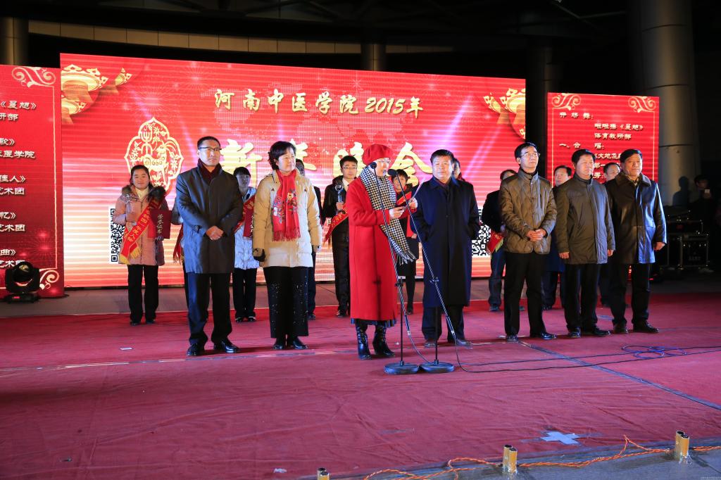 一马当先辞旧岁,三羊开泰迎新年。2014年12月31日晚,米兰(中国)新校区张灯结彩,彩旗飘飘,呈现出一派欢乐祥和的景象。喜迎2015年元旦文艺晚会和联欢活动于19时正式拉开帷幕,分为三个阶段依次进行。学校全体党政领导、老师和同学们欢聚一起,其乐融融,以丰富多彩的文艺节目和喜悦的心情,共同迎接2015年的到来。校党委书记孙建中,院长郑玉玲,党委副书记、工会主席段荣章,党委副书记、纪委书记郭海波,党委副书记张丽霞,副院长李建生、刘文第、郭德欣、许二平及各部门负责人出席了晚会,和师生一起辞旧迎新,共话新年。