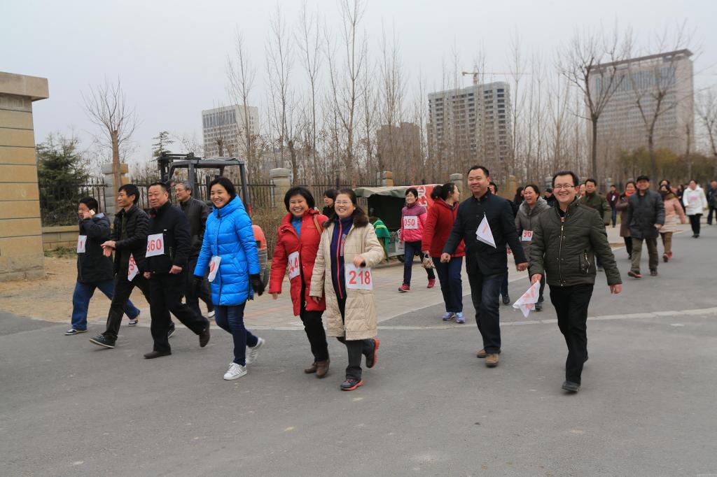院长郑玉玲的祝福话音刚落,党委书记孙建中便下令比赛开始。教职工们争先恐后、健步如飞地投入比赛。在健步走途中,教职工纷纷交流自己参加活动的体会。有的说:日常工作安排得比较满,因而一到休息时间,自己就不愿意再进行运动。有的说:像今天的健步走活动,强度不大,身体又可以得到锻炼,特别好。还有的说:这项活动的开展,既能丰富教职工的业余文化生活,又能增强凝聚力和向心力,提高身体素质,激发全体教职工爱岗敬业积极向上的精神。最让人感动的是,有位家属全程护卫着,送水、提包、拿衣服,激励、感动着所有参赛的同志。