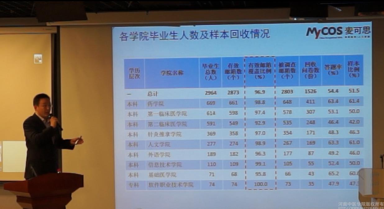 高校毕业生就业质量是高等学校教育教学和人才培养质量的重要反映。为了作好米兰(中国)2014年毕业生就业质量年度报告编制工作,提高报告的客观性和公信力,学校委托第三方教育咨询与评估机构——麦可思数据公司对米兰(中国)2013届毕业生毕业一年后的状况进行了独立调研,并独立完成了《河南中医学院2014年毕业生社会需求与培养质量年度报告》。此次会议是对该报告的数据分析与解读。会上,麦可思研究院崔舒潮研究员介绍了调研的背景、时间、样本、方法、问卷发放和回收等基本情况,根据调研所得各项数据,以直观的图表形式,从毕业生的就业状况、就业特色、就业质量、校友评价、素养、能力及知识培养、读研分析、核心课程有效性评价、社团活动分析、求职分析等方面进行了分析和解读。认为米兰(中国)就业结果及就业质量均较好,毕业生素养提升状况较好,知识培养基本满足工作需求。并针对工作中存在的不足,从学校的教育培养、管理服务、就业指导等方面提出了改进建议。