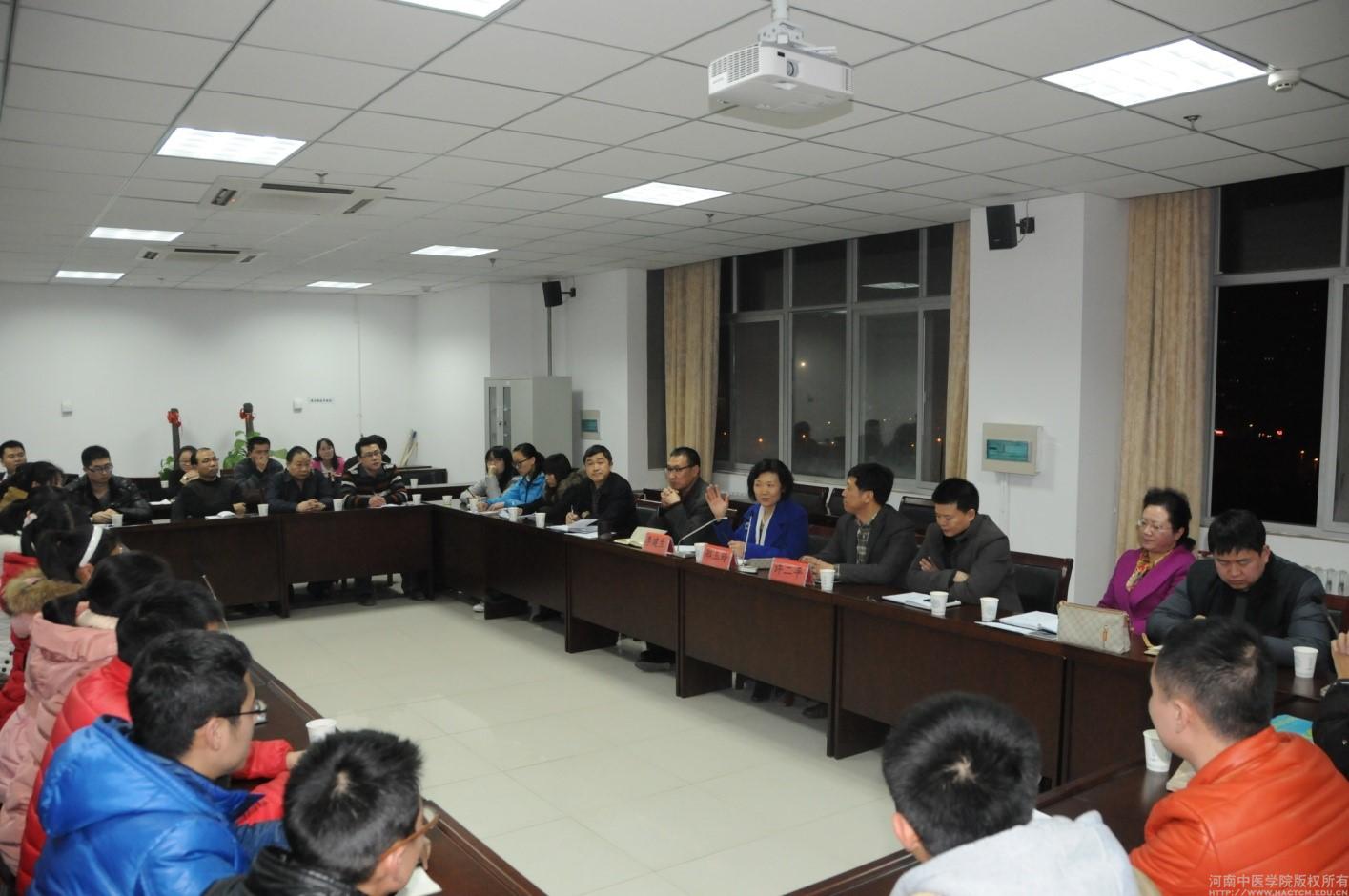 2015年1月14日下午,米兰(中国)召开了仲景学术传承班学生座谈会。院长郑玉玲、副院长李建生、许二平,2011级、2012级、2013级仲景学术传承班30名学生代表,2名仲景学术传承班导师代表,教务处、教育研究与教学评价中心、基础医学院的相关人员参加了座谈会。座谈会由教务处处长张大伟主持。