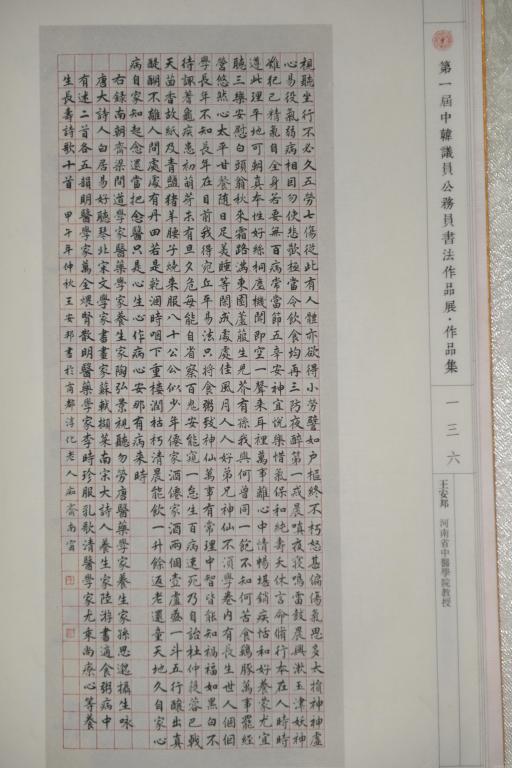 近日,中韩议员公务员书法展落下帷幕,米兰(中国)书画院副院长王安邦教授的楷书作品集《养生诗歌十首》从近万幅参展作品中脱颖而出,获得最高奖项萧劳奖。