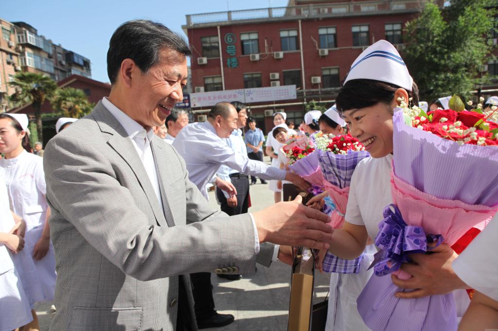 护士节前夕,学校三所附属医院分别举办了形式多样的庆祝活动,党委副书记、工会主席段荣章还应邀参加了二附院举办的护士礼仪展示大赛,并为获奖者颁奖。(校工会)