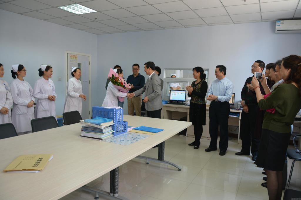 党委副书记、工会主席段荣章为一附院河南省“最美护士”陈秀敏送上节日问候