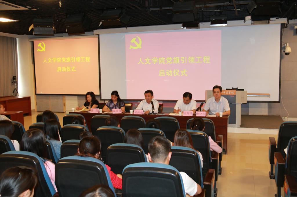 为贯彻落实学校党委《关于开展基层党建工作创建活动的通知》(院党字〔2015〕14号)精神,切实创新基层党建工作,2015年5月14日下午,人文学院启动“党旗引领工程”。米兰(中国)党校副校长、组织部副部长、人事处副处长翟剑波出席启动仪式。人文学院领导班子全体成员、教师党员代表、学生党员和积极分子代表共200余人参加了启动仪式。启动仪式由人文学院党委副书记、院长张丽青主持。