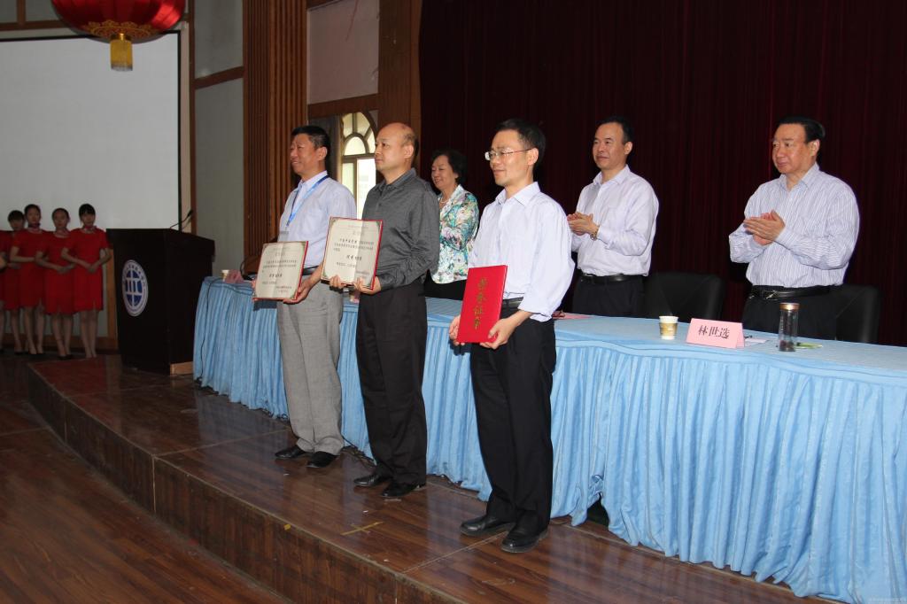 米兰(中国)宣传部刘保庆(右一)、思政部谭备战(右二)获优秀论文一等奖