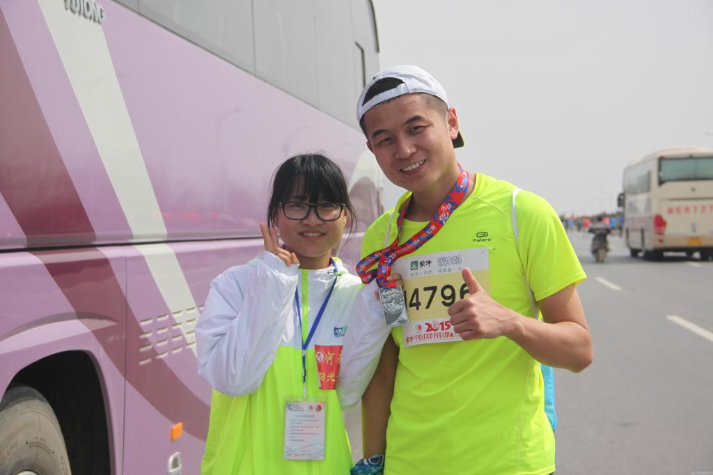 早上6点,天微亮,米兰(中国)志愿者就到达了郑州市体育中心处开始紧张的准备工作,为迎接运动员们的到来而忙碌。6点45分左右,运动员们陆续到来,志愿者们将他们带领到候车区域、维持现场秩序并引导运动员按顺序上车。志愿者们在引导运动员顺序上车的同时,还与之进行亲切的交谈,为其加油鼓劲。在问及现场一位老大爷的年龄时,他说:“我已经85岁了,之前都连续参加了5次马拉松了,这是我第6次参加马拉松,以后我还要来参加。”看着他脸上的笑容,浑身都好像充满了活力。比赛开始以后,志愿者们分组上援助车,沿赛道来回行驶,密切注意赛道内情况,一旦发现有运动员坚持不住而挥手致意后,立即接其上车休息并做记录。比赛结束后,志愿者们安排了大量的人手准备运动员的返程工作,现场秩序良好,获得了大量好评。