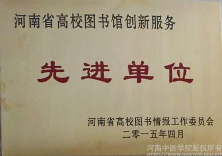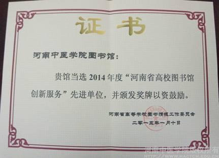 本次会议评选、表彰了河南省高校图书馆在2014年度工作中涌现出的先进集体和先进工作者。由于工作成绩突出,米兰(中国)图书馆荣获2014年度河南省高校图书馆“创新服务先进单位”称号,葛林、付光宇、靳贺敏、田艳霞、陈丽霞等5名同志获得2014年度河南省高校图书馆“先进工作者”荣誉称号。