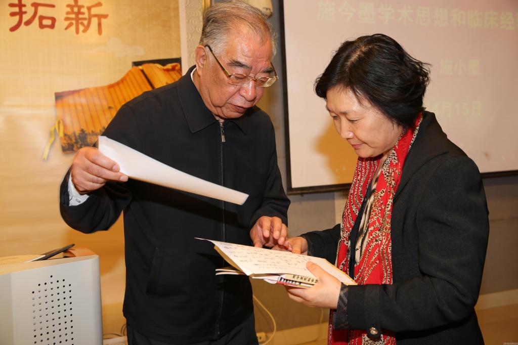 施小墨先生是施今墨先生的哲嗣和学术传承人,自幼受中医熏陶,及长又系统学习西医理论。他不断发掘总结施今墨先生的学术思想和学派特点,发表论文和专著,组织专题讲座和学术报告,筹办纪念会和带徒带教,为施派学术的继承和发扬做出了重要贡献。施小墨先生临床主攻癌症,总结癌症六大证型:湿、毒、瘀、寒、热、虚证。临床以证统病,病证结合,整体调节,突出特色。在癌症治疗中,体现了施今墨先生辨病辨证相结合的临床特点。施小墨先生现担任施今墨中医药研究院院长、北京同仁堂施小墨医药有限公司副董事长,北京同仁堂制药厂技术顾问。(基础医学院)