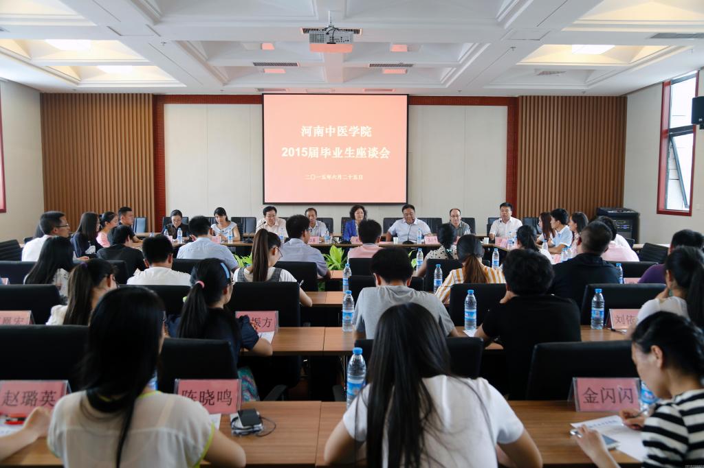 座谈会上,大家首先一起观看了由学工部制作的记录2015届毕业生大学学习、生活的《致青春、致母校》视频,共同回忆了大学五年的青春岁月。接着,2015届毕业生自由发言,参加座谈会的同学有考上硕博连读研究生的、有到基层乡镇医院就业的、有参加“西部志愿”或“三支一扶”计划的、有入伍从军的、有自主创业的,同学们纷纷表达了对母校培养的感激之情,为母校近几年的快速发展感到骄傲和自豪,即将离开母校的依依不舍;并表达了不辜负母校的培养、为母校争光的信心和决心。同时,同学们也结合自己的专业学习、校园生活经验、实习和就业经历,就校园生活、课程改革,临床实践和动手能力培养,科研意识和能力培养,综合素质提升等方面向学校提出了自己的建议。座谈会上,大家时而因回忆起兴奋的事激动不已,时而因感动的事潸然泪下,时而因自豪的事豪情满怀……