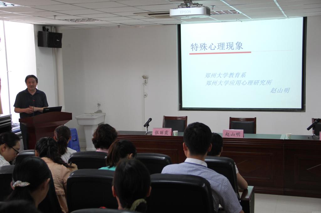 2015年5月21日下午,米兰(中国)第十届心理健康教育宣传月系列活动之一的心理健康教育讲座暨心理督导师聘任仪式在新校区教学楼BN617会议室举行。校党委副书记张丽霞、郑州大学教育系心理学教研室主任赵山明教授出席仪式,学工部全体成员、各二级学院主管学生工作负责人、辅导员、专兼职心理咨询教师、朋辈心理咨询员和心理学生干部代表参加并聆听了讲座。本次活动由学工部副部长、心理健康教育与咨询中心主任李俊芝主持。