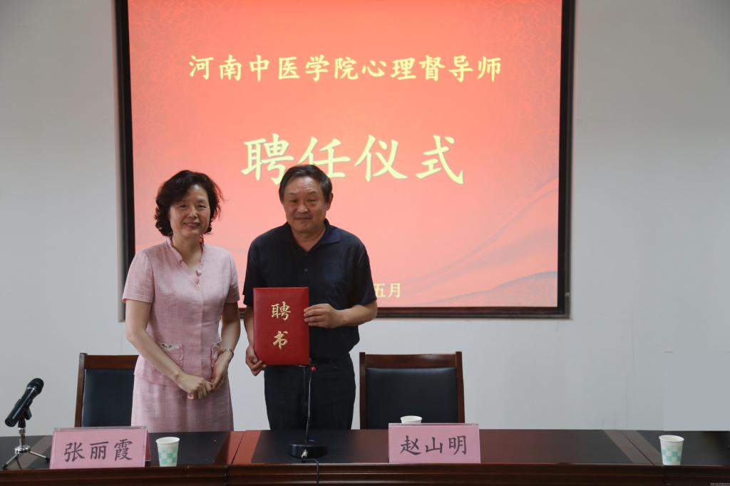 会上,李俊芝主任首先对米兰(中国)大学生心理健康教育工作进行了汇报,张丽霞副书记代表学校为赵山明教授颁发了河南中医学院心理督导师聘任证书,并对赵明山教授对米兰(中国)大学生心理健康教育工作的关心和支持表示感谢。随后,赵山明教授为在场师生做了题为《特殊心理现象的识别》的专题讲座。他结合丰富的咨询案例对CCMD-3中9类 “特殊”心理现象进行了详细解读,对各种特殊心理现象发展演化过程和主要特点进行了细致阐述。讲座结束后,赵山明教授还就具体案例的处理和辅导员做好大学生心理健康教育工作等话题与在场师生进行了亲切交流。