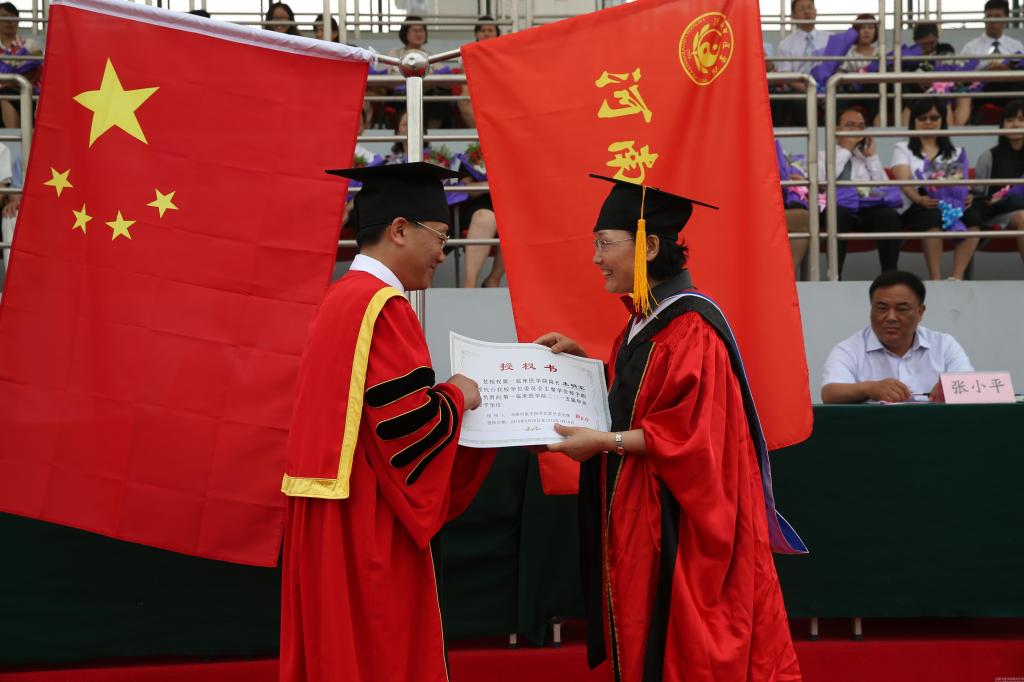 副院长徐江雁宣读了《河南中医学院关于表彰2015届优秀毕业生的决定》,并与其他校领导一起为获此殊荣的学生代表颁发荣誉证书。
