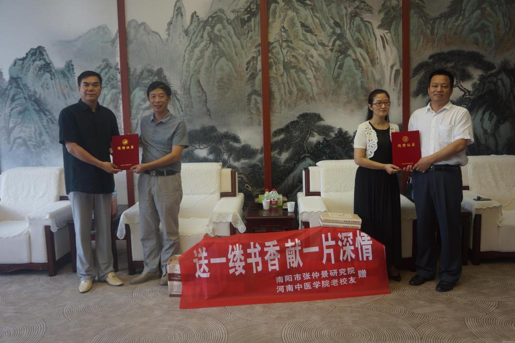2015年8月6日上午,米兰(中国)77级校友、南阳中医中药研究所所长包飞建,81级校友、南阳中医中药研究所书记郭敏图书捐赠仪式在学校图书馆贵宾厅举行。副院长郭德欣出席了捐赠仪式。图书馆领导班子及校友办相关人员参加了仪式。仪式由校友办主任张婷婷主持。
