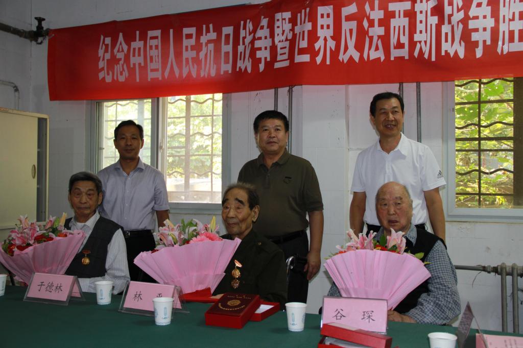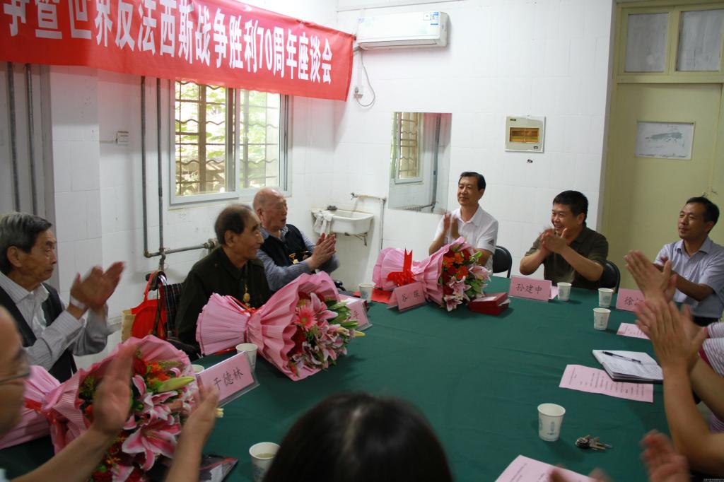 校党委书记孙建中代表校党委和全体师生向三位老英雄致敬,他指出,抗日战争胜利70周年是中华民族值得铭记的日子,按照上级党组织的安排,学校特意召开此次座谈会并看望慰问抗日战争时期参加过革命的老同志,永远不忘历史,铭记历史,同时向所有在学校工作过的抗战前辈致敬。他同时表示,作为后辈,会在前辈精神的感召和指引下,接好班,干好活,为国家的更加强大贡献力量,使一切反动派不敢动中华民族一丝一毫,并由衷祝福三位老英雄身体健康,幸福长寿。