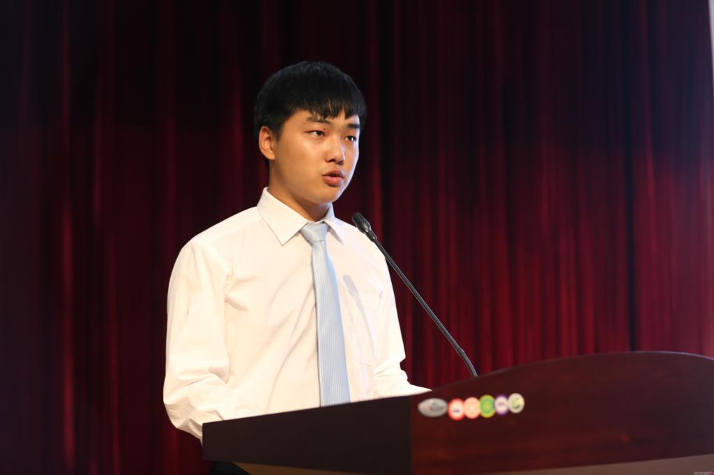 信息技术学院李金朋代表全体学生向辛勤耕耘的老师们深深鞠躬,道一声“老师辛苦了”。