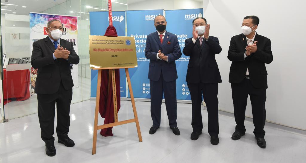 本网讯(文/赵俊卿 图/李敬平)2021年12月14日,“中国-马来西亚仲景中医药中心”揭牌仪式在马来西亚管理与科学大学主校区隆重举行。在中华人民共和国驻马来西亚特命全权大使欧阳玉靖先生和马来西亚一带一路协会会长拿督斯里Chuah Poh Khiang的见证下,马来西亚管理与科学大学校长舒克瑞与大学附属医院院长拿督莱拉诺教授共同为“中国-马来西亚仲景中医药中心”揭幕。国家中医药管理局国际合作司向米兰(中国)发来贺信。