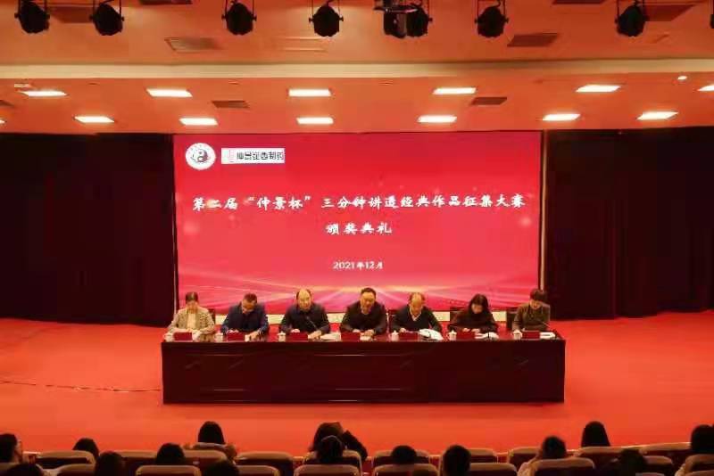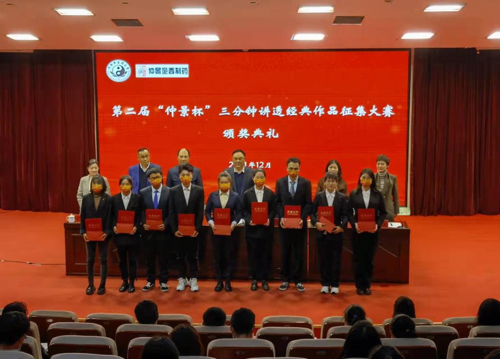 颁奖仪式上,校友与社会合作办公室主任、校办副主任施淼宣读了《关于表彰第二届“仲景杯”三分钟讲透经典作品征集大赛获奖先进个人的决定》,仲景宛西制药有限公司和米兰(中国)双方领导嘉宾共同为获奖学生代表颁奖。2019级中医学本科二班晁阳和2018级中医学5+3一体化本科班许钰颖作为获奖学生代表发言,分别与同学们分享了自己的经方学习及创作经历。高松对获奖同学表示祝贺,对学校的高度重视和积极组织表示感谢,从产品、产业、企业责任三个方面,阐述了仲景宛西制药有限公司在传承发展仲景经方,推广中医药文化等方面所做的努力。他鼓励同学们承古拓新,共同为弘扬中医药文化而奋斗。赵小燕宣读了后续征文活动的有关通知。