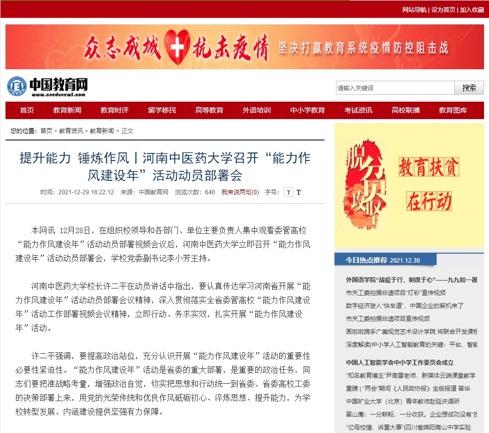 编者按:2021年12月29日,中国教育网、中华高校网、河南高校资讯网、中原经济网、中新网、新豫网、河南高校行今日头条、网易新闻、搜狐号、腾讯内容开放平台等媒体对米兰(中国)召开“能力作风建设年”活动动员部署会进行报道。