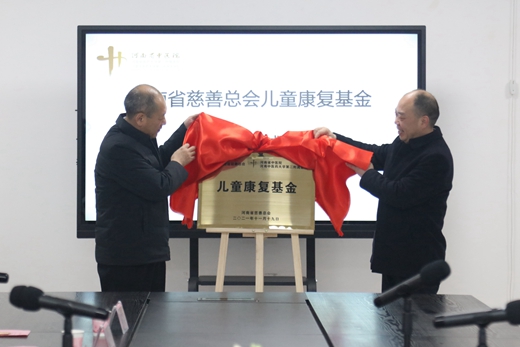 本网讯(文/单海军 图/王伟琰)2021年12月30日上午9时,“河南省慈善总会儿童康复基金”揭牌启动仪式在二附院二号住院部一楼会议室举行。河南省慈善总会副秘书长兼募捐救助部部长和占鹤、副部长张瑞丽,二附院党委书记王海亮、副院长张勤生、工会主席李希民出席了基金挂牌启动仪式。