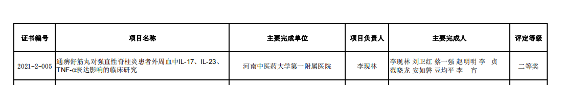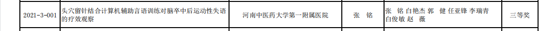 本次河南省中医药科技成果奖所取得的优异成绩,是对医院科研人员在中医药研究领域所做工作的认可和鼓舞,也是医院科研实力不断提高和增强的成果表现,谨向荣获2021年度河南省中医药科技成果奖的各主要负责人及团队表示祝贺。