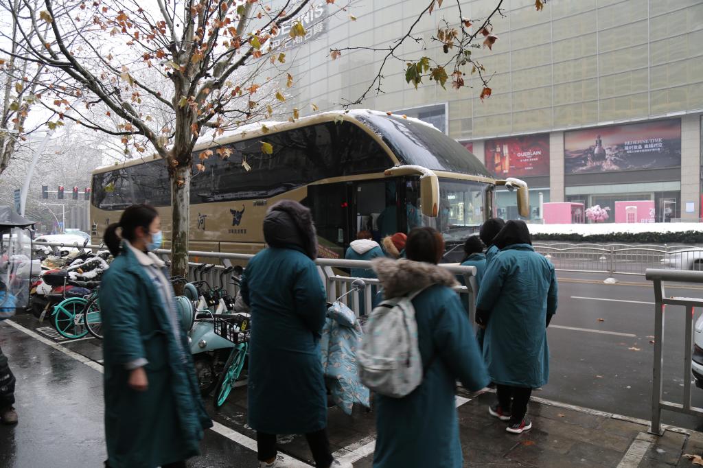 时间紧任务重,不少医护人员刚下夜班,就简单准备后于1月5日早晨,顶着风雪相继奔赴金水区、管城区等各个核酸采集一线。上午10点,首批参与第一轮郑州市全员核酸采集任务的260名医护人已全部到达相应点位,投入开展居民采样工作。
