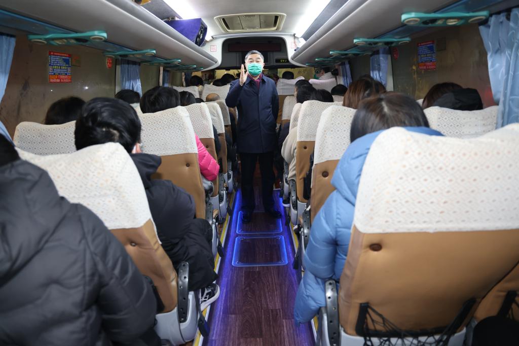 在即将奔赴各个核酸采集点的大巴车上,张大伟殷切叮咛、深情嘱托,他代表医院向全体队员致以崇高的敬意,鼓舞队员们以更饱满的精神状态投入到疫情防控工作中。他强调疫情就是命令、防控就是责任,广大医护人员在任何时刻都能够闻令而动、逆行出征,充分展现了中医药医护工作者的使命与担当。他要求各部门要全力为一线队员做好服务保障,希望队员们统一行动听指挥,注意保暖,保证安全,严格做好个人防护,规范开展核酸采样,圆满完成支援任务!