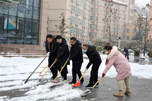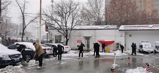 当日清晨,医院行政楼工作人员就开始进行积雪清扫工作,大家拿起铁锨、扫帚,他们不畏严寒,相互配合,不顾雪地路滑,经过了一个小时的努力,终于将医院各主干通道、门诊楼、住院部等重要位置积雪清理完毕,确保患者就医及生命通道的畅通。