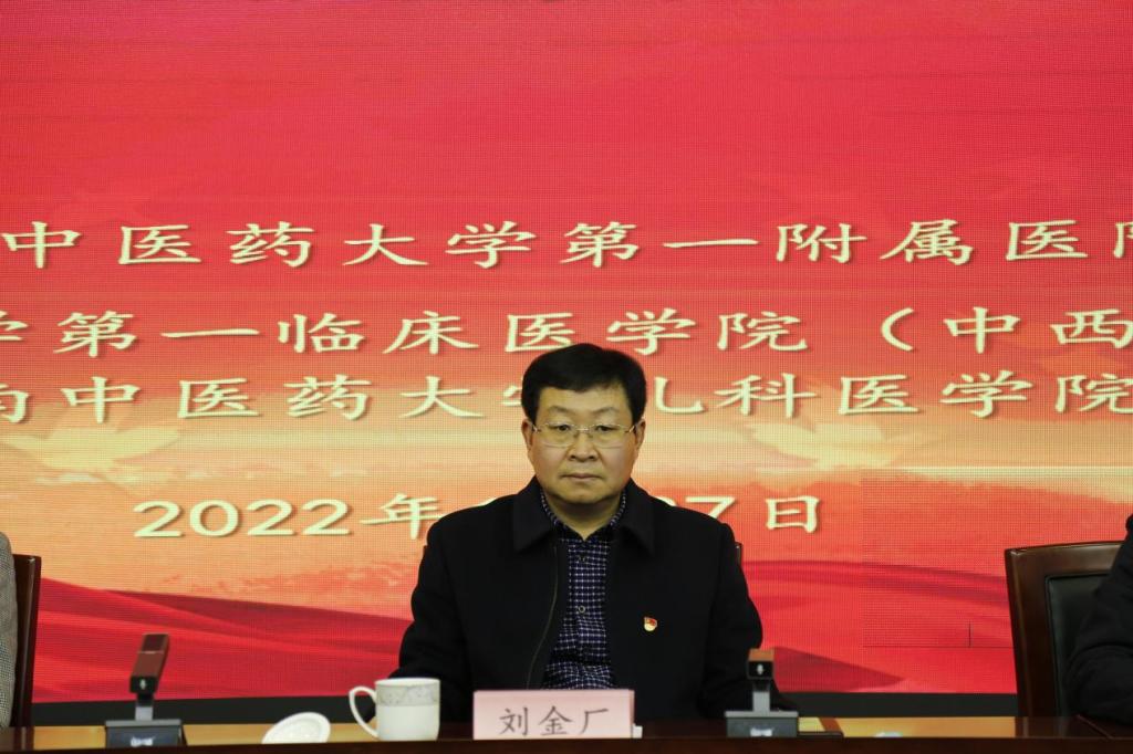 按照疫情防控相关要求,本次会议采用线上线下两种方式相结合的形式召开。学校党委委员、宣传部部长刘金厂,一附院、一临床、儿科医学院全体领导,医院各总支书记、相关职能科室主任参加现场会议,其他人员以支部为单位线上参加会议。会议由医院党委副书记、院长朱明军主持。