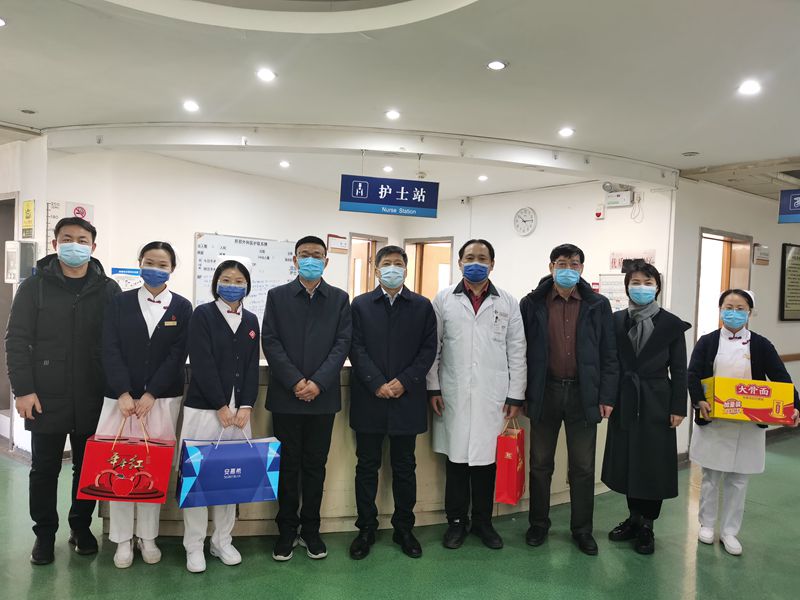 许二平还询问了全院春节值班安排和安全保障情况。学校党委办公室主任张顺超、医院党委副书记胡仕祥、副院长朱光,以及院办、宣传统战部等部门负责人一同到临床一线慰问。