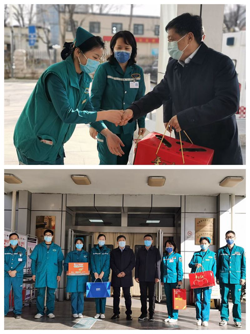 一元复始,万象更新,许二平一行冒着寒风,带着春节的祝福来到急救创伤中心、普外科二区和门诊收费取药窗口,和主任、护士长及值班人员互相拜年。许二平表示,大家为了病人的生命健康,放弃与家人团聚的机会,在千家万户阖家团圆的日子坚守工作岗位,向大家和支持大家工作的家人表示感谢和祝福。一年来,大家经受住了疫情反复、洪涝灾害的考验,锻造出了一支拉得出、顶得上、打的赢的队伍,为护佑人民群众的生命健康和安全做出了巨大的贡献!在新的一年里,希望大家继续发扬伟大抗疫精神,继续为人民群众的生命健康保驾护航!