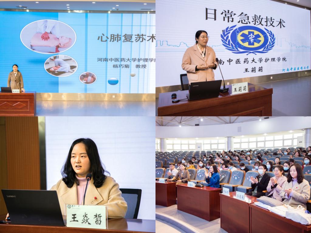 随后,护理学院三位老师为该校广大女职工作了三八妇女节女性健康专题讲座。重点学科主任杨巧菊教授以《心肺复苏术》为题,详细讲解了心肺复苏的现实应用、操作流程、重要意义等内容;王焱皙博士以《女性常见疾病的预防》为题,讲授了女性常见疾病的产生原因及预防事项;王莉莉老师讲授了日常急救技术中的出血包扎、骨折固定。讲座结束后,大家纷纷表示受益良多,期待有机会再次深入学习。