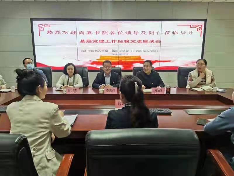 本网讯(文/范璐璐 图/杨梦丹)为深入贯彻落实“能力作风建设年”活动,以互学互鉴,拓宽视野为契机提升党建工作能力水平。2022年3月8日上午,米兰(中国)尚真书院党委副书记李志轩、副书记苏峰、副院长时慧一行6人到第一临床医学院(中西医结合学院)学生党总支,开展党建工作交流座谈。一临床党委副书记张婉红、学生党总支书记范璐璐,学工办主任陈占科及全体本科党支部书记参加了会议。会议由张婉红主持。