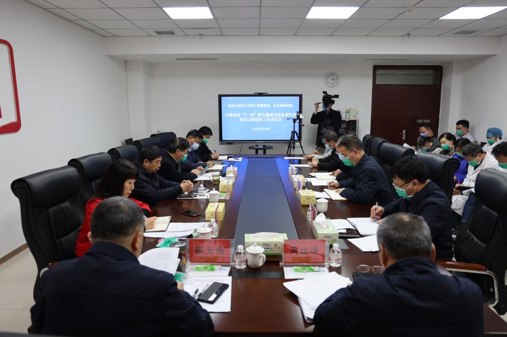 本网讯(文图/李博彧)2022年3月30日下午,三附院召开郑州“7·20”特大暴雨灾害追责问责案件以案促改动员会,院党委书记周运峰,党委副书记、院长张大伟,党委副书记焦钧,副院长张进一,纪委书记刘会勋,党委委员、副院长王志超、高翔、工会主席蔡庆春及“7.20”以案促改工作领导小组成员参加了会议。会议采取线上线下相结合形式,焦钧主持会议。