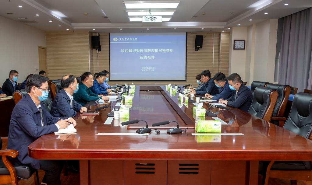 本网讯(文/孙俊波 图/秦东仁)2022年4月14日下午,省纪委省管本科高校第一协作区疫情防控监督检查组第9组莅临米兰(中国)监督检查并指导疫情防控工作。河南警察学院纪委书记、监察专员王民璞担任检查组长。米兰(中国)疫情防控指挥部指挥长、校党委副书记、工会主席张小平代表学校作专题汇报,校疫情防控指挥部副指挥长、校党委委员、副校长张加民参加会议。校纪委书记、监察专员王少玉主持会议,校防控办、教工组、研究生工作组、学生工作组、保卫组、后勤组、教学组、医疗技术科研组、宣传组、财务物资组、督察组、东明校区防控办等负责人参加了会议。