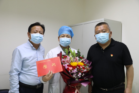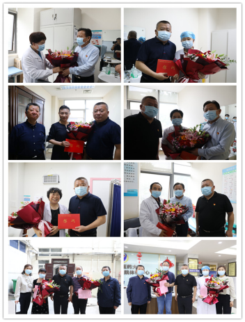 本网讯(文/李海松 图/李瑞)近日,在“五一”国际劳动节即将来临之际,一附院党委书记翟剑波、党委副书记孟林带领党委办公室、工会办公室工作人员走访慰问医院各岗位上的劳动模范、“五一劳动奖章”获得者,并为他们送了上鲜花和节日的祝福。